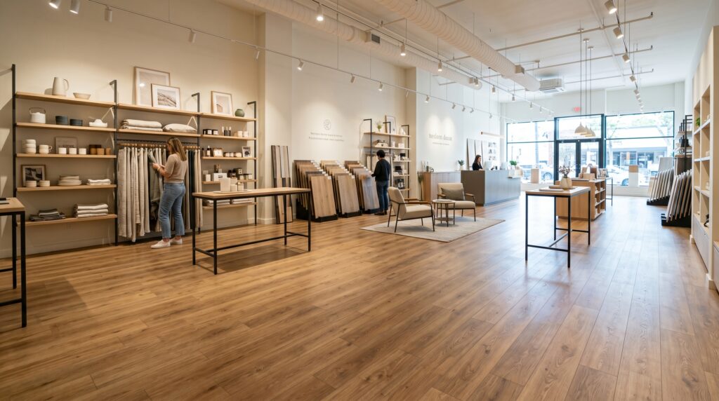 Ván sàn gỗ giúp không gian kinh doanh trở nên nổi bật, tạo ấn tượng tốt với khách hàng mà không cần ngân sách quá lớn.